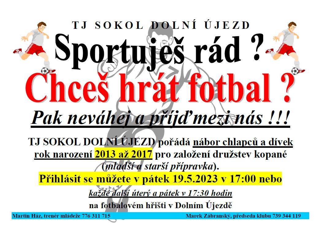 Úvod > Život v obci > Informace z obce > TJ Sokol DÚ pořádá nábor chlapců a dívek pro založení družstev kopané